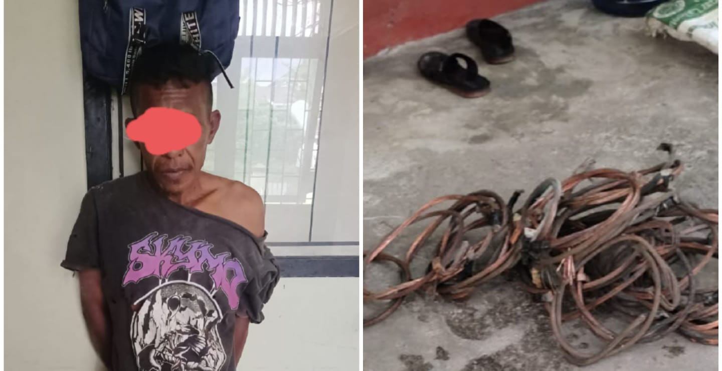 BANGKA — Ml alias Alex (50), warga komplek wasre, Kelurahan Bukit Ketok, Kecamatan Belinyu dibekuk unit reskrim Polsek Belinyu, Senin (29/05) siang. Dia ditangkap lantaran diduga sudah melakukan tindak pidana pencurian berupa kabel tembaga milik salah satu perusahaan pembangkit listrik.