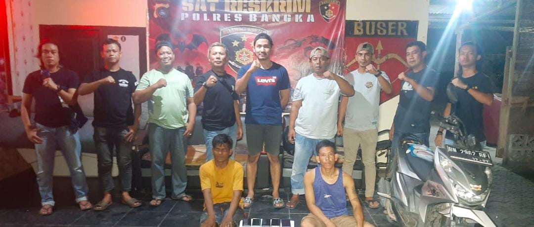 BANGKA — Dua orang pemuda yakni Hari Ramadan (26) serta Domi (26) pendatang asal Sumatera Selatan, diciduk tim kelambit Satreskrim Polres Bangka, Kamis (04/01) sore. Keduanya diamankan di Desa Berbura, Kecamatan Riausilip.