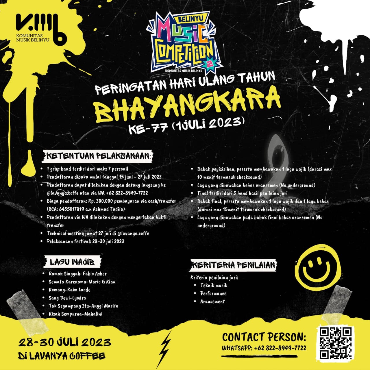 BANGKA — Komunitas Musik Belinyu atau KMB, dikabarkan bakal menggelar festival band di Kecamatan Belinyu. Festival band itu bertemakan Bhayangkara dalam rangka memperingati HUT Polri yang ke 77.