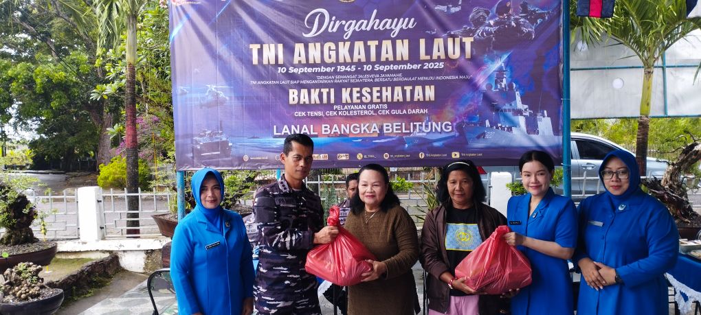BANGKA – Pangkalan TNI Angkatan Laut Bangka Belitung, menggelar kegiatan bakti sosial dalam rangka HUT TNI AL ke 80, Selasa (09/09/2025) pagi, di rumah dinas Danlanal Bangka Belitung.