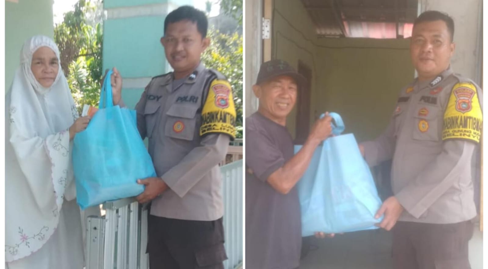 Pemberian bansos itu diberikan langsung oleh Bhabinkamtibmas Desa Gunung Muda Bripka Rusdiansyah dan Bhabinkamtibmas Desa Lumut Aipda Edi kepada warga setempat.