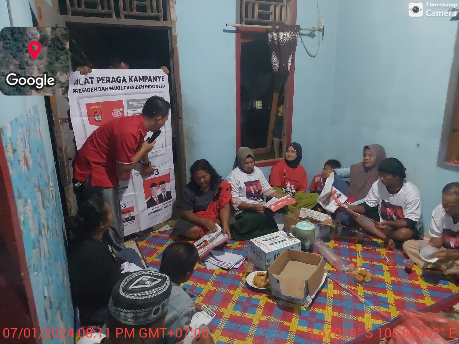 Titik ketiga yang dia sambangi adalah kampung telang, Desa Gunung Muda, Kecamatan Belinyu, Minggu (07/01) malam.