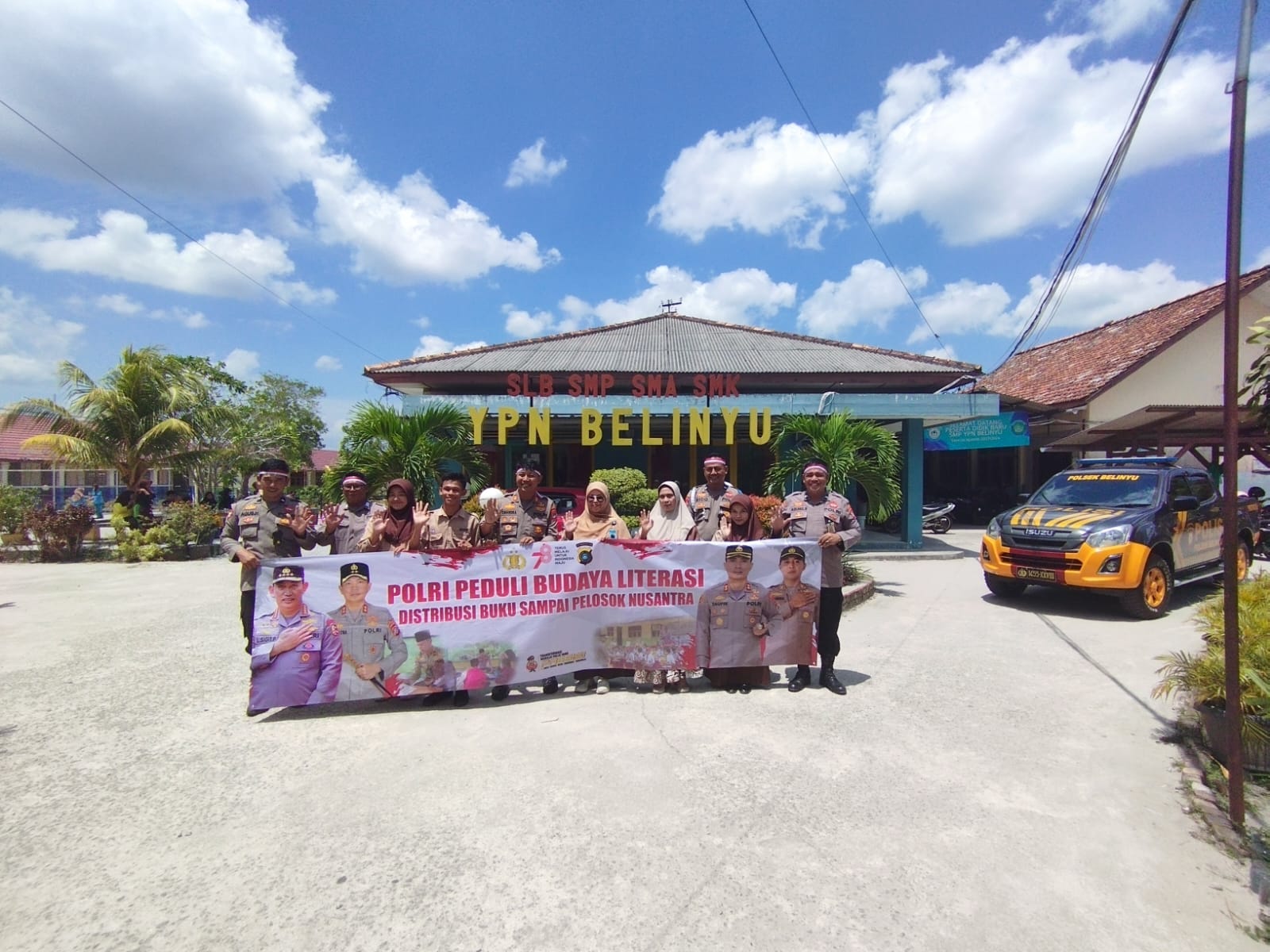 Sejumlah dari berbagai pengetahuan dan keagamaan dibagikan kepada guru dan siswa di sejumlah sekolah dari tingkat SD hingga SMA. Penyerahan buku itu diserahkan langsung oleh Kapolsek Belinyu AKP Chandra Satria AP.