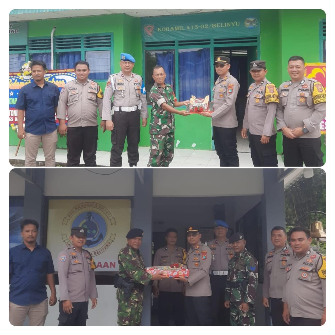 BANGKA – Kepolisian Sektor Belinyu atau Polsek Belinyu, mendatangi Koramil Belinyu dan Mako Lanal Babel, Sabtu (05/10) pagi.