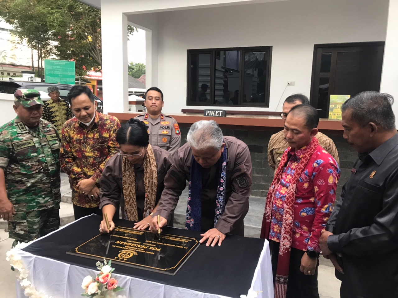 BANGKA — Bupati Bangka Mulkan hadir dalam peresmian bangunan pos penjagaan Kejari Bangka, Jum’at (13/01) siang. Dia menyebutkan, bangunan ini akan menjadi ikon yang dimiliki oleh Kabupaten Bangka maupun pihak Kejaksaan Bangka.