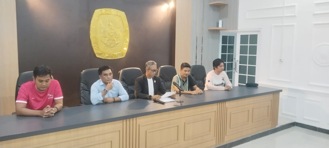 Didampingi Ketua KPU Provinsi Babael, Husin, Redi Citra dari Divisi Teknis Penyelenggaraan, Eko Iswantoro dari Divisi Hukum dan Zulkifli divisi perencanaan data dan informasi, Ketua KPU Kabupaten Bangka, Sinarto memberikan pernyatan resminya.