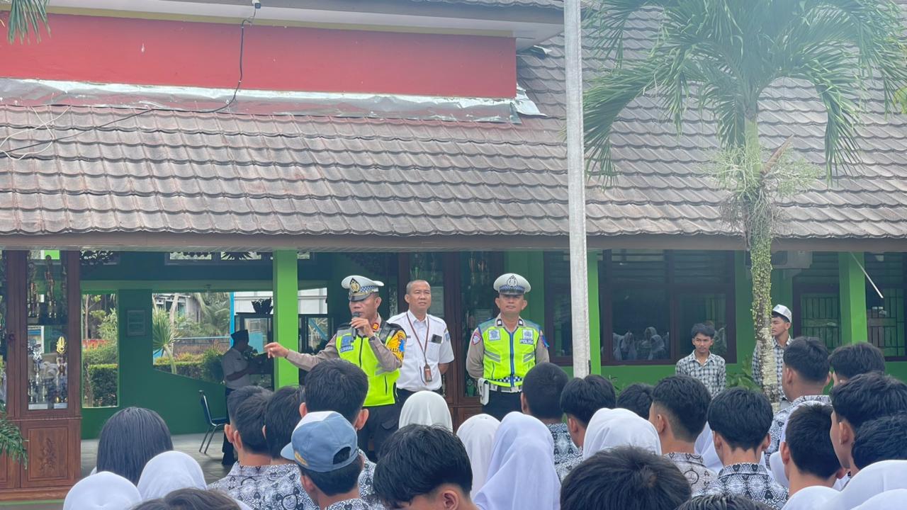 Kegiatan itu mengusung tema ” Satlantas Bangka Sapa Pelajar” dengan tujuan memberikan edukasi kepada belajar tentang tertibnya berlalu lintas.