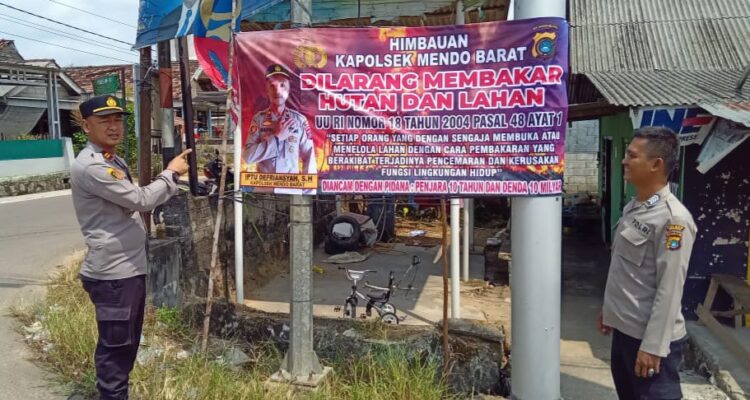 Hukrim Polsek Mendobarat Pasang Spanduk Himbauan KarhutlaBangka|Agustus 16, 2023oleh adminBANGKA — Polsek Mendobarat memasang spanduk himbauan larangan membakar hutan. Pemasangan spanduk