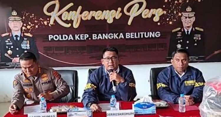 PANGKALPINANG – Polda Kepulauan Bangka Belitung menggelar konfrensi pers kasus pembunuhan yang