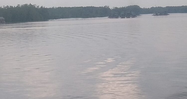BANGKA — Sejumlah ponton isap nampak bekerja mencari timah di alur sungai