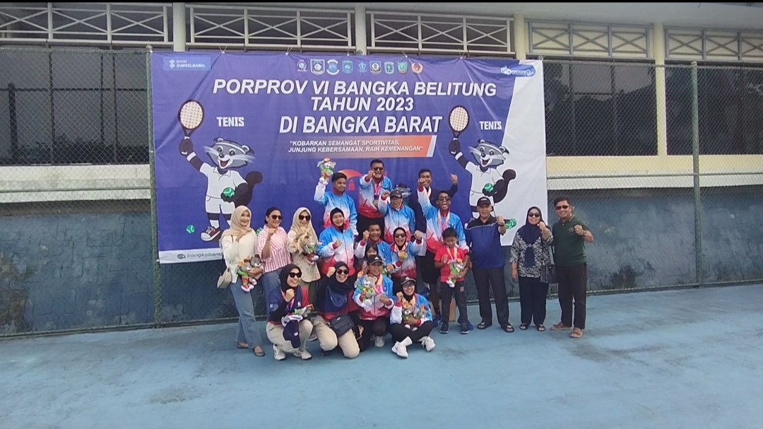BANGKA — Tim tenis lapangan Kabupaten Bangka menyumbang 4 medali emas pada ajang Pekan Olahraga Provinsi ke enam tahun 2023 yang digelar oleh Pemerintah Kabupaten Bangka Barat. Dengan perolehan medali tersebut, Kabupaten Bangka keluar sebagai juara umum pada cabang olahrga tenis lapangan.