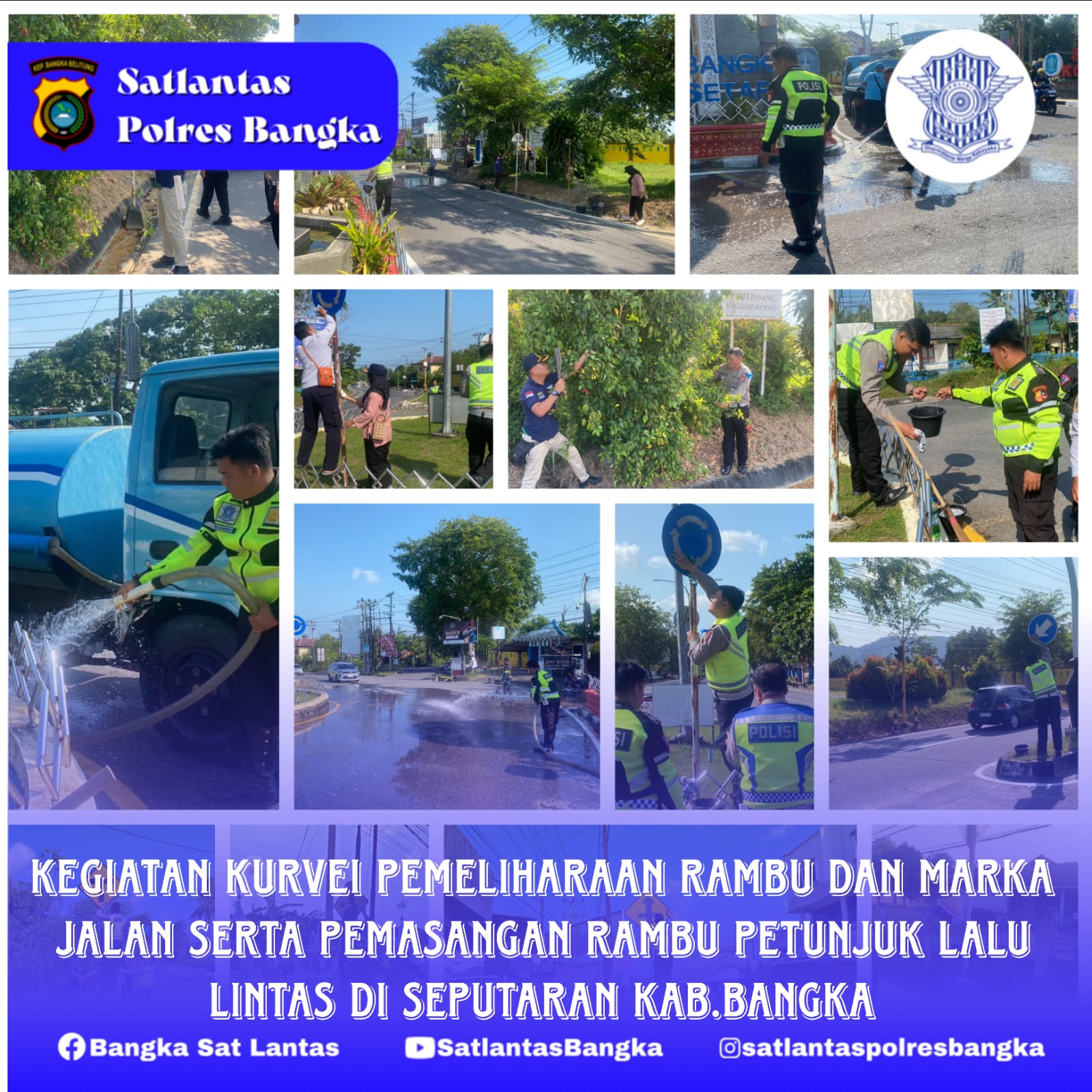 BANGKA — Tim gabungan yang terdiri dari Satlantas Polres Bangka, Dishub Kabupaten Bangka serta Perumda Tirta Bangka gotong royong melakukan perawatan dan memasang rambu lalu lintas di seputar Kota Sungailiat, Jum’at (19/07) sore.