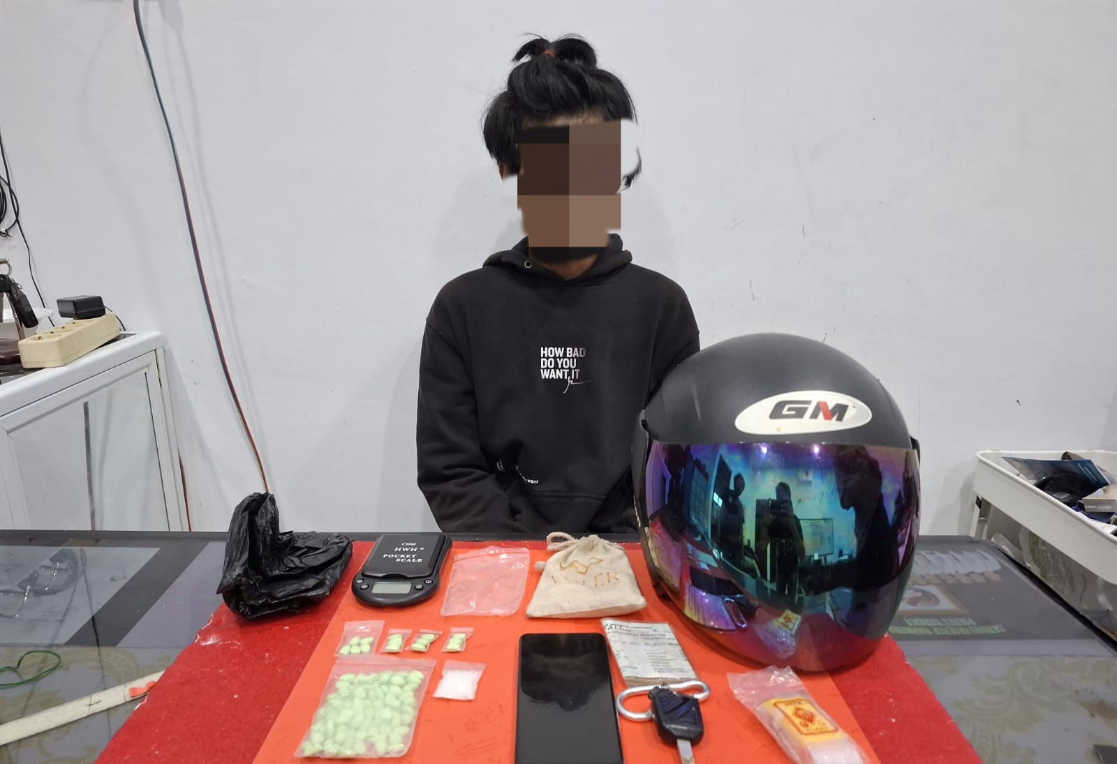 Selain mengamankan terduga pelaku dan barang terlarang itu, Polisi juga mengamankan barang bukti lainnya yakni sepeda motor, timbangan digital, plastik bening hingga Handphone.
